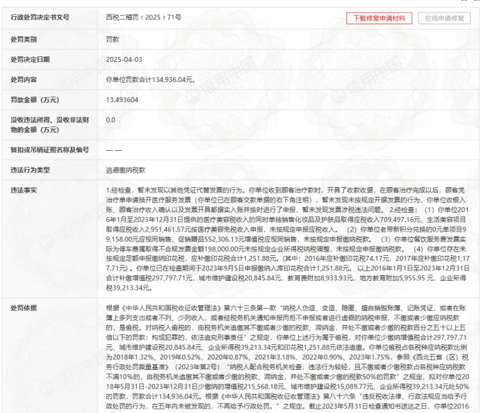 医美业务屡陷逃税、医疗事故与虚假宣传